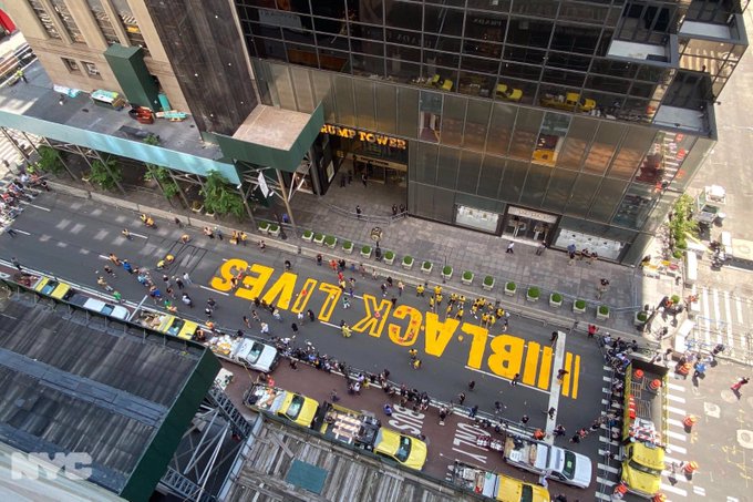 New York Mayor Bill de Blasio helping paint ‘black lives matter’ infront of Trump Tower!