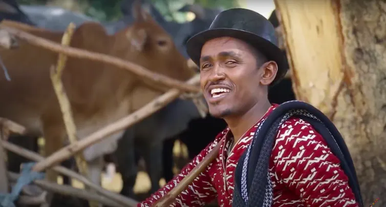 By Ethiopian standards, the song is familiar and timeless, focusing on Oromo issues but appealing to all Ethiopians through its use of a musical style that shares many characteristics with the music of the northern and western regions. Maalan Jira cycles through a 6/8 metre (that is, a fast pulse of six notes in a cycle) with an autotuned vocal track and the faint sound of a massenqo (the one-stringed spike fiddle) in the background. In the video men and women dance against a pastoral backdrop, with cattle – a mainstay of the Oromo way of life – playing heavily into what otherwise looks like a video about courtship and unrequited love.