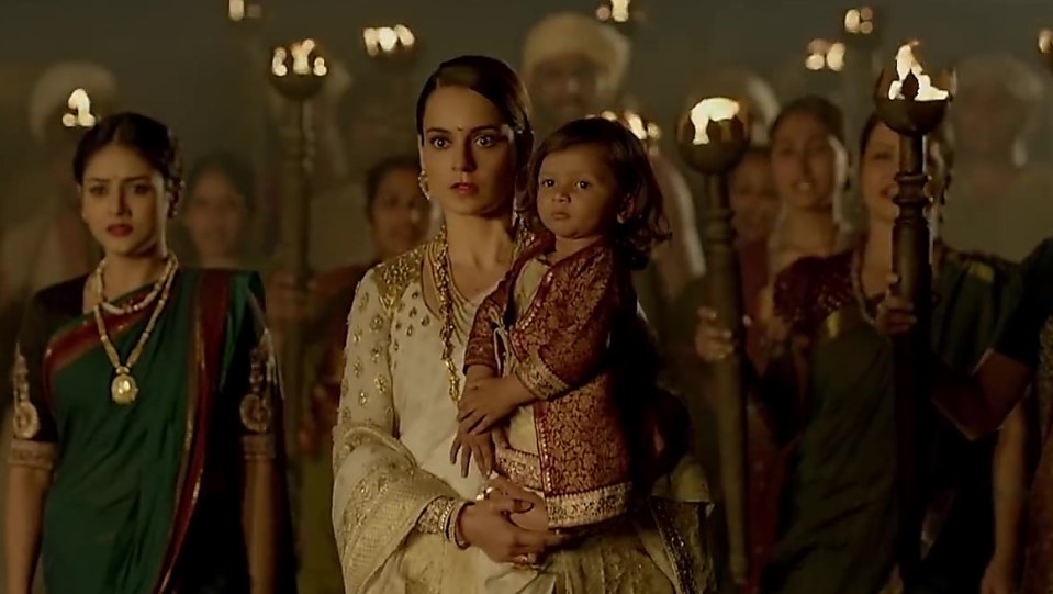 While due credits have to be given to this film  for going beyond stereotypes like fighting by women, protecting animals’ rights, drinking cow milk from an untouchable etc., however, Rani Lakshmi Bai apart from wearing gorgeous sarees and jewelry seems to be less than appealing.  The film could not be courageous enough to raise some pertinent questions on various themes like the name changing ceremony after marriage, using of bangles as a sign of servitude which the King of Jhansi wears, shameful of being bullied by the Britishers, and last but not the least the most important question that is the adoption of ‘son’ for Jhansi.